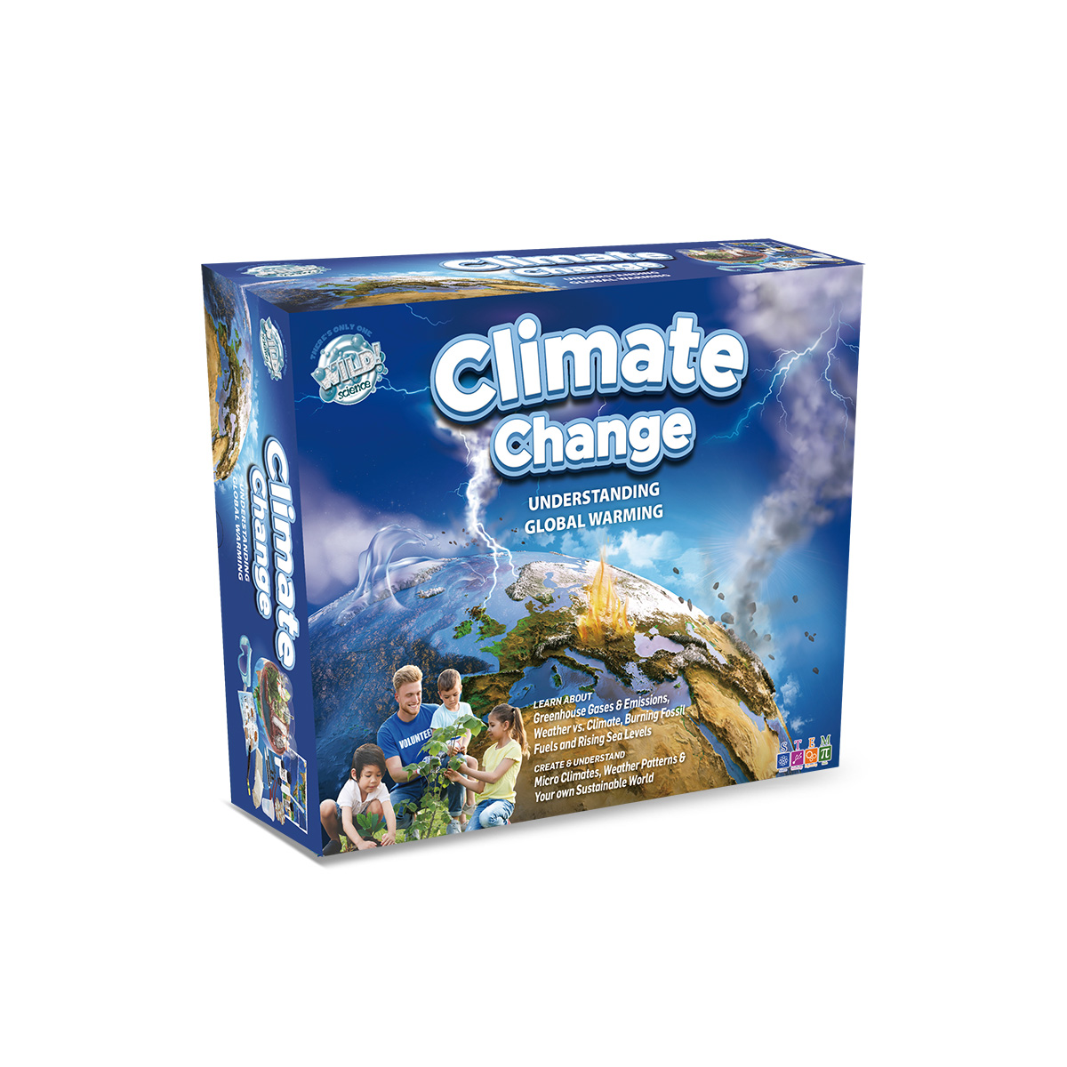 The 'CLIMATE CHANGE' kit makes sense of global weather systems and the impact of human activity. It works just like our planet and even looks like it. Use real apparatus to conduct scienti c experiments that will startle, thrill and amaze you. Grow and eat your own crops, irrigate a desert, create rainfall and see if you can save your real ice glaciers! Watch oceans rising, create and measure winds, measure carbon dioxide and acid emissions. Feel the greenhouse effect. Float icebergs and monitor ocean currents as they melt. And much much more…